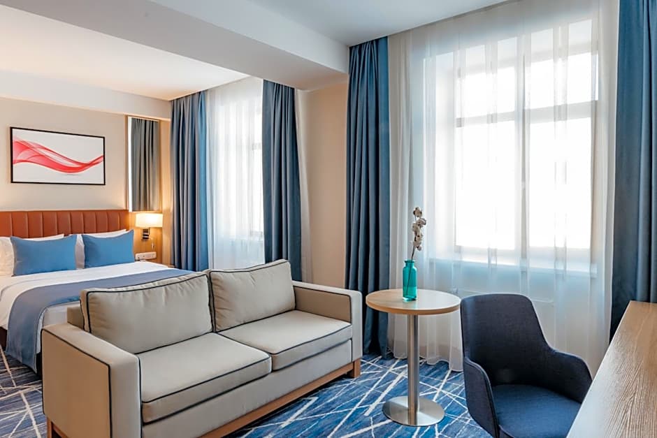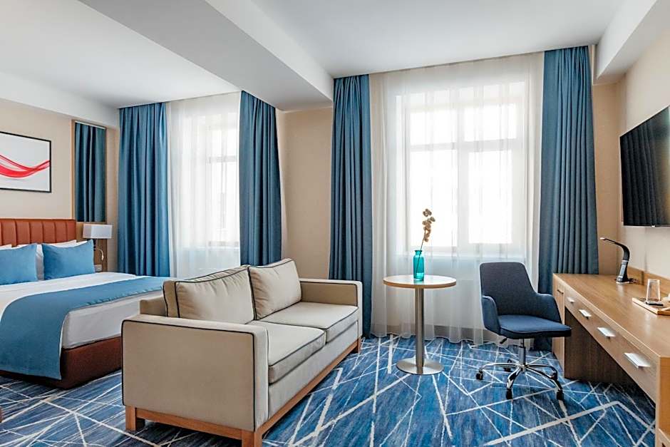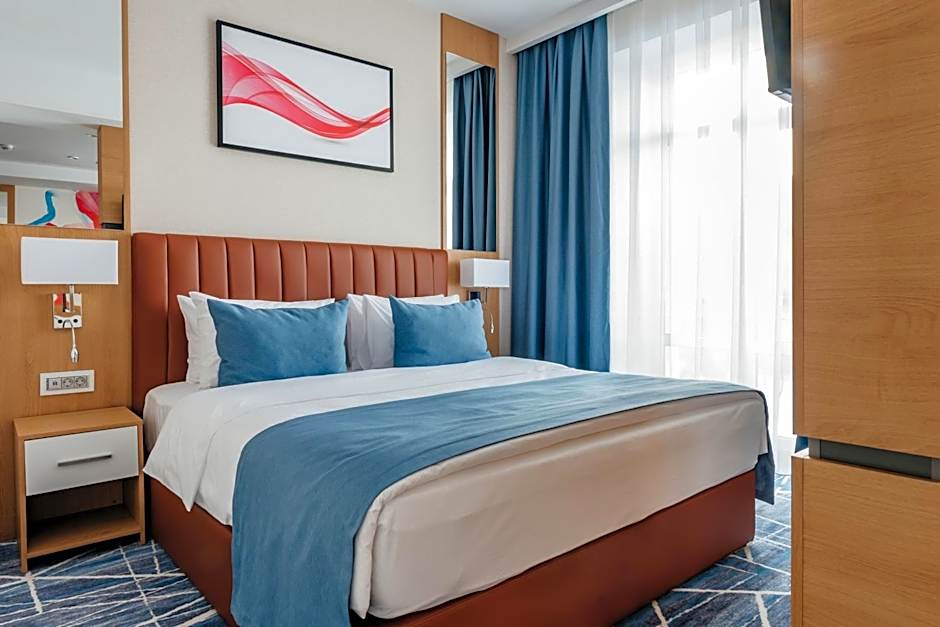 The air-conditioned suite has 1 bedroom and 1 bathroom with a shower and a hairdryer. The suite offers a flat-screen TV with cable channels, soundproof walls, a mini-bar, a tea and coffee maker as well as city views. The unit has 1 bed.