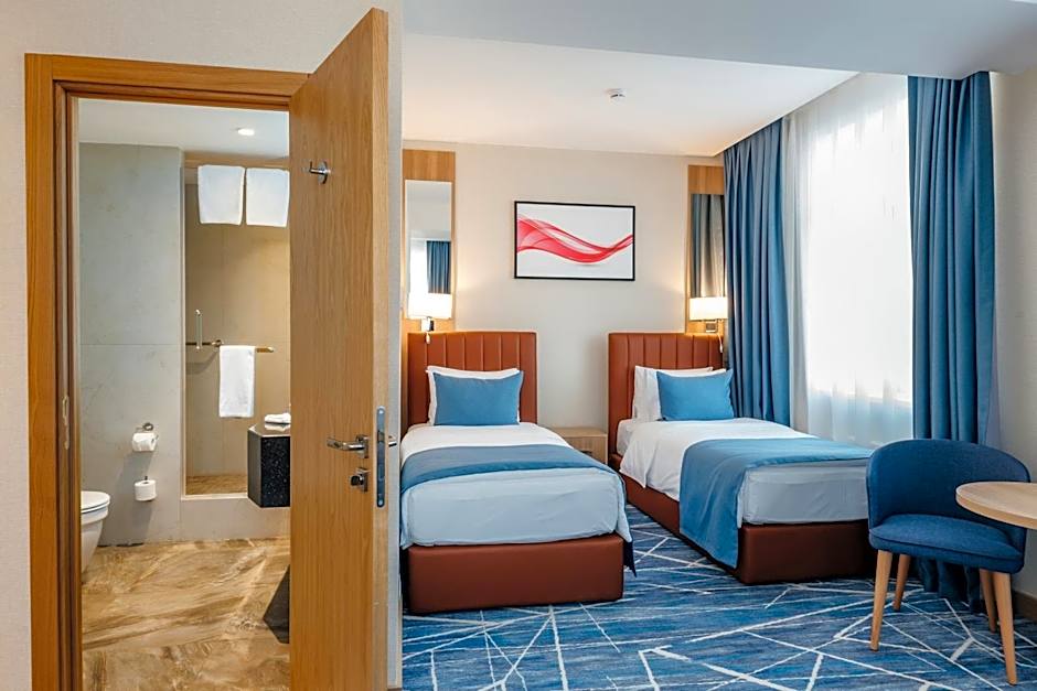 Featuring free toiletries and bathrobes, this twin room includes a private bathroom with a shower, a hairdryer and slippers. The air-conditioned twin room features a flat-screen TV with cable channels, soundproof walls, a mini-bar, a tea and coffee maker as well as city views. The unit has 2 beds.